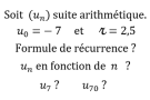 Déterminer la formule de récurrence, puis la formule explicite du terme général d’une suite arithmétique